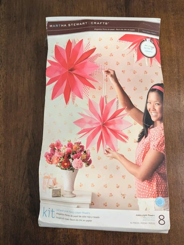 Martha Stewart Crafts Fancy Paper Flowers Kit 8 Red and Pink NEW Garden Party