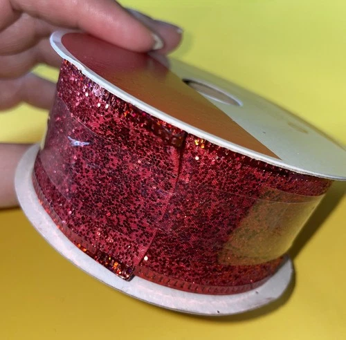 Celebrate It Solid Red Glitter Sparkles n Shines Wire Ribbon 1.5”x30’ SEA394