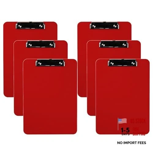 Pack of 6 Plastic Clipboards with Durable Writing Boards for Red Flat Clip