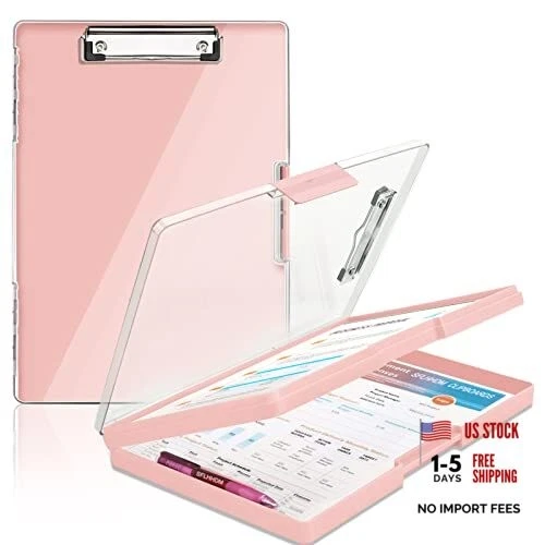 Clipboard with Storage,Heavy Duty Clip Boards 8.5x11 with 2 Storage Pink