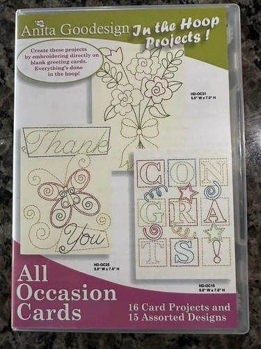 Anita Goodesign All Occasion Cards 16 Cards + 15 Asst’d Designs Embroidery CD