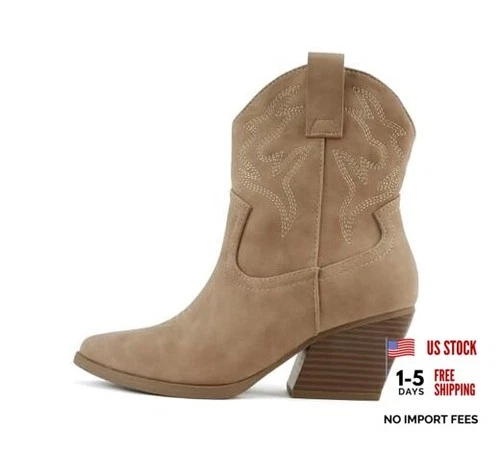 “BLAZING” ~ Women Western Bootie Pointe Toe with Low Heel (Wide Fit 8 Taupe Pu