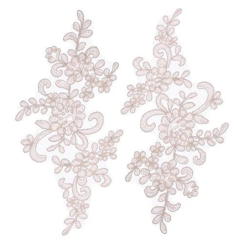 2 Pcs Flower Lace Appliques 3D Embroidery Lace Patches, Pink (23cm)