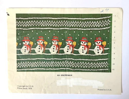 Ann Smith Smocking Plate Pattern A2-Snowman Vintage 1978 Winter Snow
