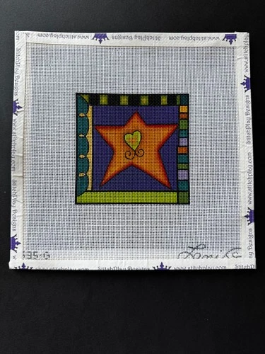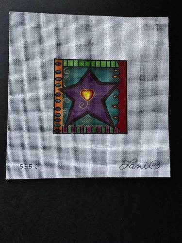LANI Purple Star with Yellow Heart Hand Painted hp Needlepoint Canvas