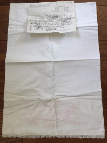 Stamped Pillowcase to Embroider COLORTEX Tubing Vintage Floral Hunting Horn 3695
