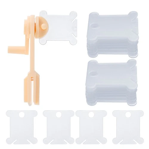 150pcs Plastic Embroidery Floss Bobbins with Bobbin Winder, White