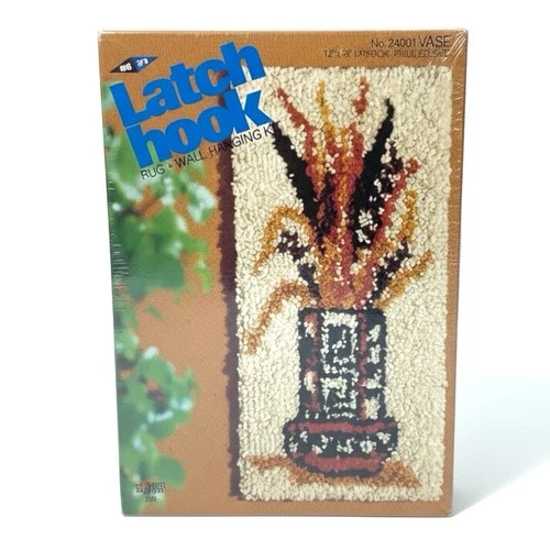 Vintage MH Yarns Latch Hook Rug Wall Hanging Kit Floral Vase No 24001 NEW Sealed
