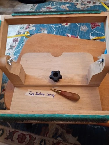 Hook Rug Set Up Thick Wooden Frame, With Hooking Tool, Rugs Embroidery, Nice