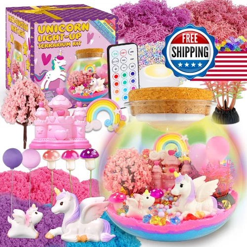 7july Unicorn Terrarium Crafts Kit for Kids-LED Night Light Up & Remote Unicorn