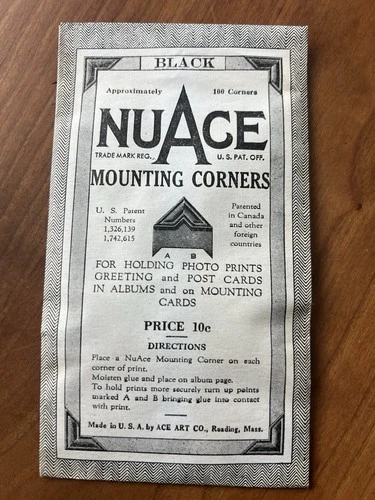 (1) Vtg Package NOS NuAce Mounting Corners (Black) 100 Corners, Photos Scrapbook