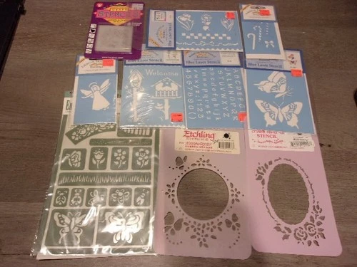 American Traditional Blue Laser Stencils 6 NEW Packages + Misc other Stencils