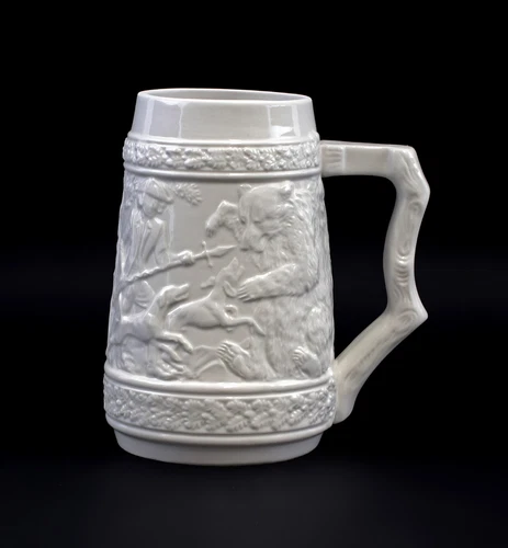 9959118 Porcelain Beer Mug White Relief Jagd-Motiv 33.8oz Special H20cm