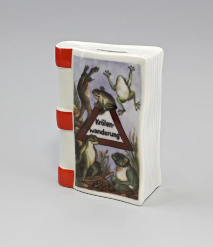 9988354 Porcelain Kämmer Money Box Savings Book Toad Walk Frog 4 1/8x5 7/8in