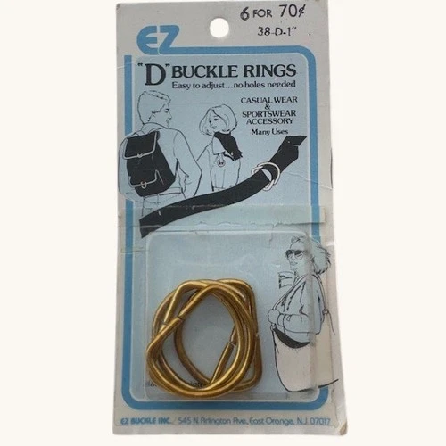 Vintage EZ Buckle Inc Gold Metal D Buckle Rings 1 Inch 6 Count 38-D-1 New NIP