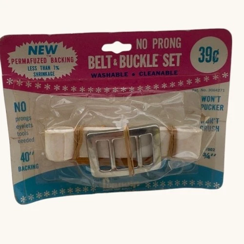 Vintage JC Penney No Prong Belt and Buckle Set Permafuzed Backing 40 Inch White