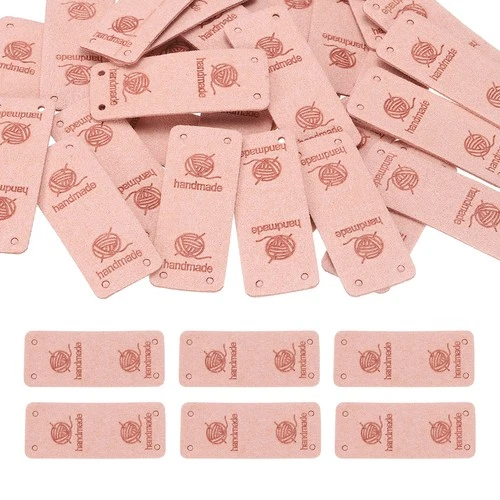 50 Pcs Handmade Leather Labels, Rectangle Handmade Tags with Hole, Dark Pink
