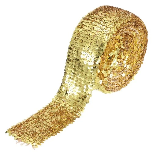 11 Yards 3 Inch Elastic Sequins Trim 8 Row Flat Sequin Strip Gold