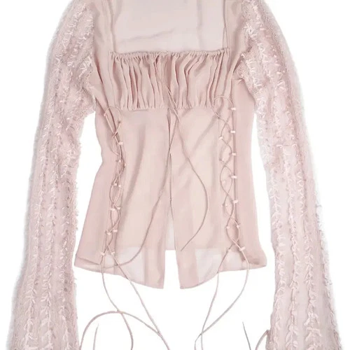 Bonnae Lace Up Chiffon Blouse Pink, Exchange Possible