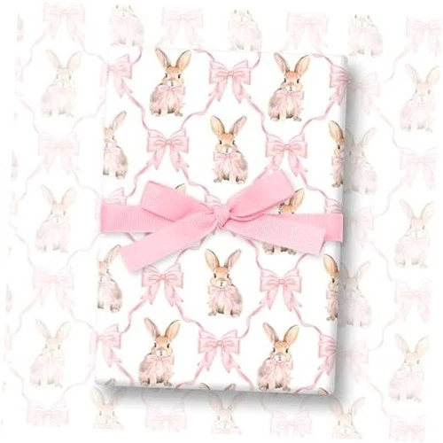 Bunny Easter Wrapping Paper Roll - 17 Inch x 16.5 Feet - Cute Bunny & Pink Bow