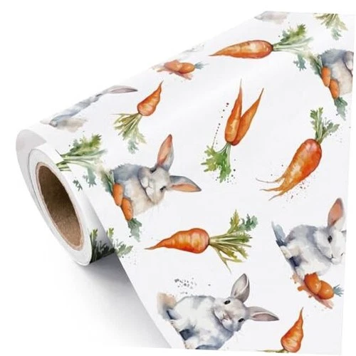 Easter Wrapping Paper Roll - Mini Roll - 17 Inch x Easter - Bunny & Carrot