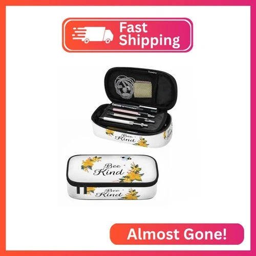 Xuwenz Bee Pencil Case Cute Bee Kind Yellow Flower Bunches Pencil Bag Pen Marker
