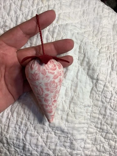 Strawberry Emery Pincushion Pink Roses & Leaves On White / Felt “ Cap “ 3-1/2”