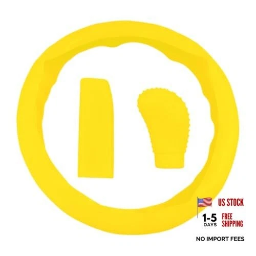3PCS Silicone Car Steering Wheel Cover Set - Includes Car Handbrake Yellow