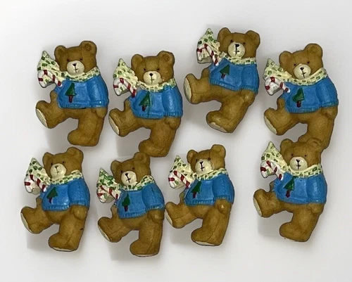 Christmas Teddy Bear Buttons Textured For Sewing or Other Crafts Set of 8