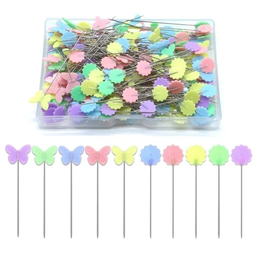 200 Pcs Straight Pins Flat Head Sewing with Flower and Multicolour