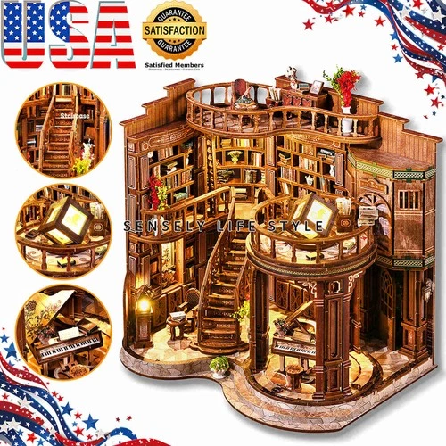 Wooden Booknooks Book Hall Kit with LED Light Book Nook Kit Adults DIY Miniature