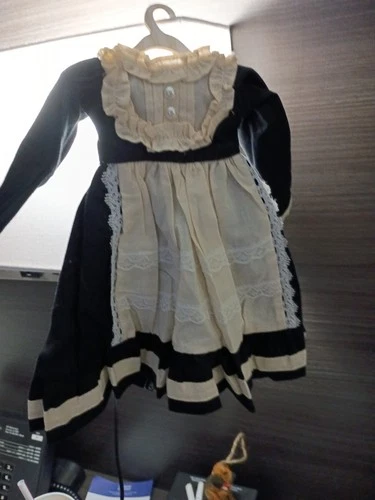 Dluxy Black and Beige Cloth Doll Dress with Lace Trim, Clothing Outfit
