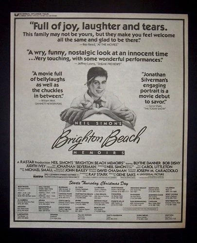 Brighton Beach Memoirs (Neil Simon) Opening 1987 Poster Type Movie Ad, Advert