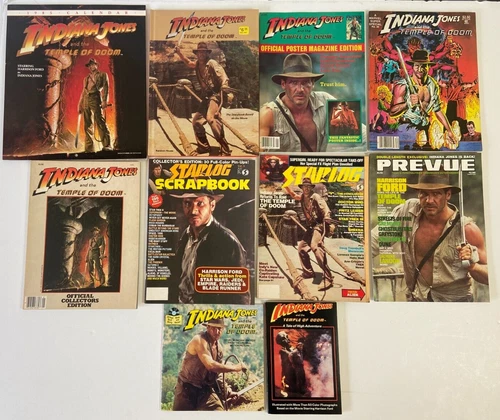 INDIANA JONES And The TEMPLE OF DOOM 10pc Lot Movie Book Comic Magazine Record