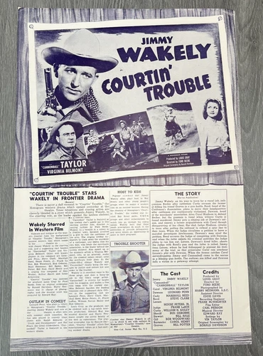 Vintage 1948 Jimmy Wakely Courtin' Trouble Movie Pressbook One Sheet Monogram