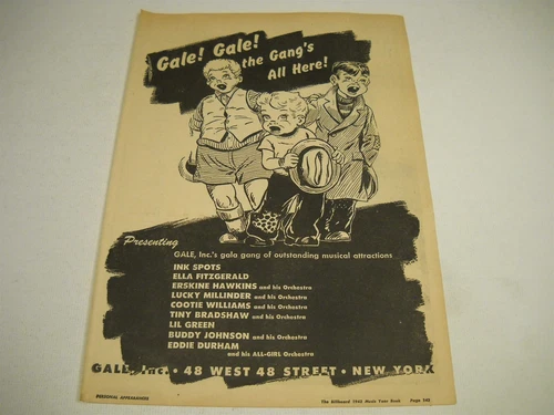 INK SPOTS Ella Fitzgerald ERKINE HAWKINS Tiny Bradshaw etc 1943 Promo Display Ad