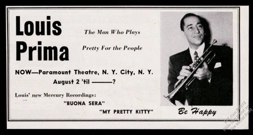 1950 Louis Prima photo Buona Sera record release vintage print ad