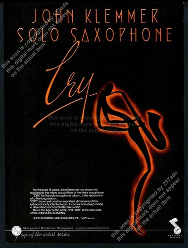 1979 cool saxophone player art John Klemmer Cry album release vintage print ad
