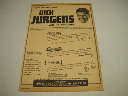 DICK JURGENS Orchestra - Here's That Band Again original 1942 Promo Display Ad