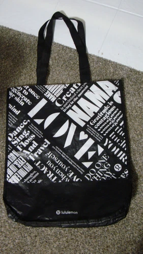 Lululemon Medium Black and White Words Love Snap Top Bag Carry Tote 14"x6"x16"