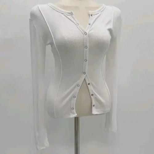 Soul's Color Snap Button Long Sleeve Black/White T-Shirt