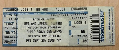 Chris Brown NE-YO Ticket Stub Concert Tour 9/29/06 2006 Rap Verizon