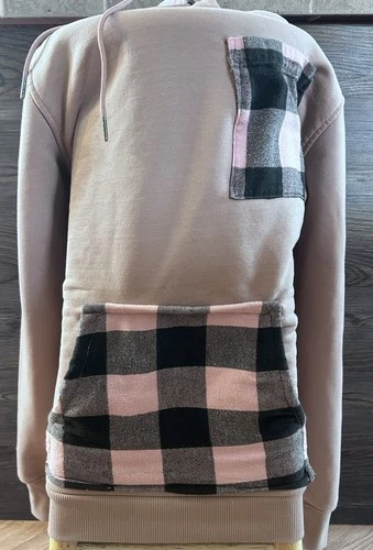 The Beatles Abbey Road Graphic Hoodie Beige with Pink Black Plaid Pockets