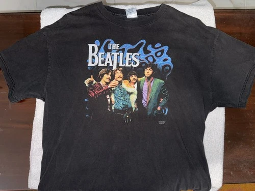 Vintage The Beatles XL Black Graphic T-Shirt Rock - 2001 Apple Corps Official