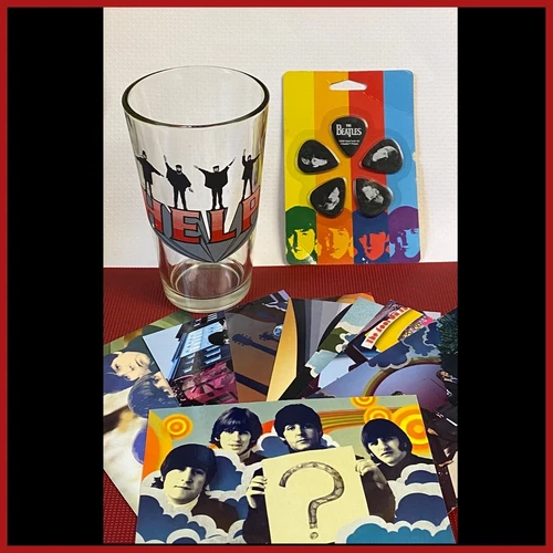The Beatles LOT Rock Band 8 Limited Edition POST CARDS 5 GUITAR PICKS Help GLASS