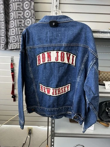 BON JOVI New Jersey Patch Denim LARGE Jacket Vintage brockum VTG