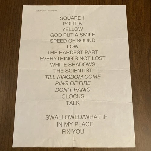 Coldplay 8/12/05 Stage Used Tour Setlist Original Indiana Deer Creek