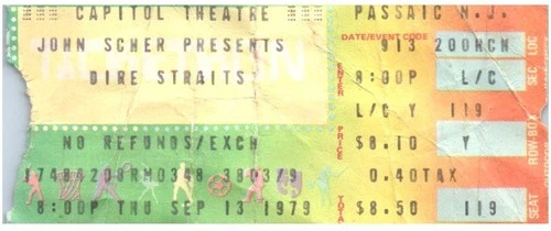 Dire Straits Concert Ticket Stub September 13 1979 Passaic New Jersey