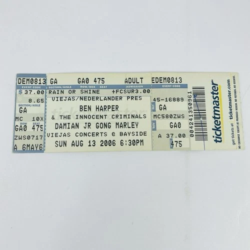 Ben Harper Viejas Bayside San Diego Ticket Stub 8-13-2006 Innocent Criminals