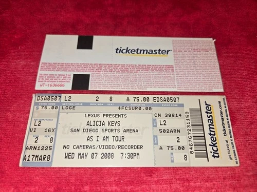VINTAGE CONCERT FULL UNUSED TICKET FOR ALICIA KEYS MAY 7 2008 SAN DIEGO ARENA